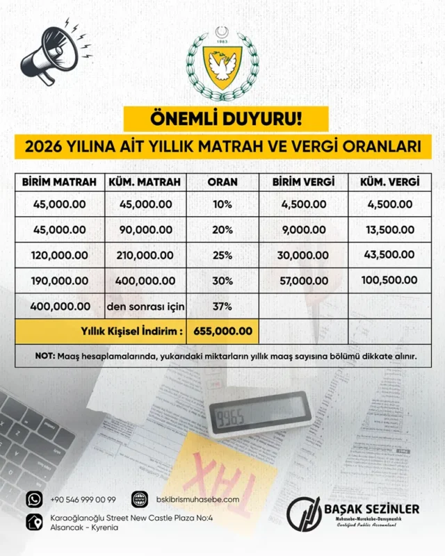 30 Oca 2026 Yılı Gelir Vergisi Matrah ve Oranları Hakkında Duyuru 2026 yılına ait gelir vergisi matrahları, vergi dilimleri ve uygulanan oranlar güncellenmiştir. Ücretli çalışanlar, işverenler ve muhas...